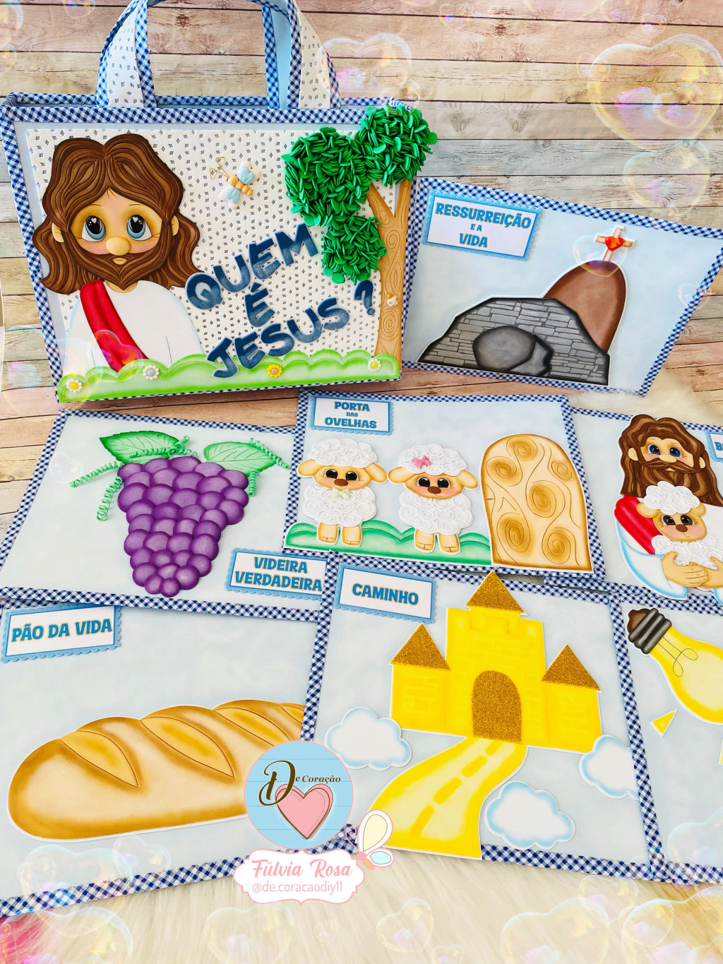 - Contém moldes para confecção de 7 placas (Bom pastor, caminho, videira verdadeira, luz do mundo, ressurreição e a vida, porta das ovelhas e pão da vida).