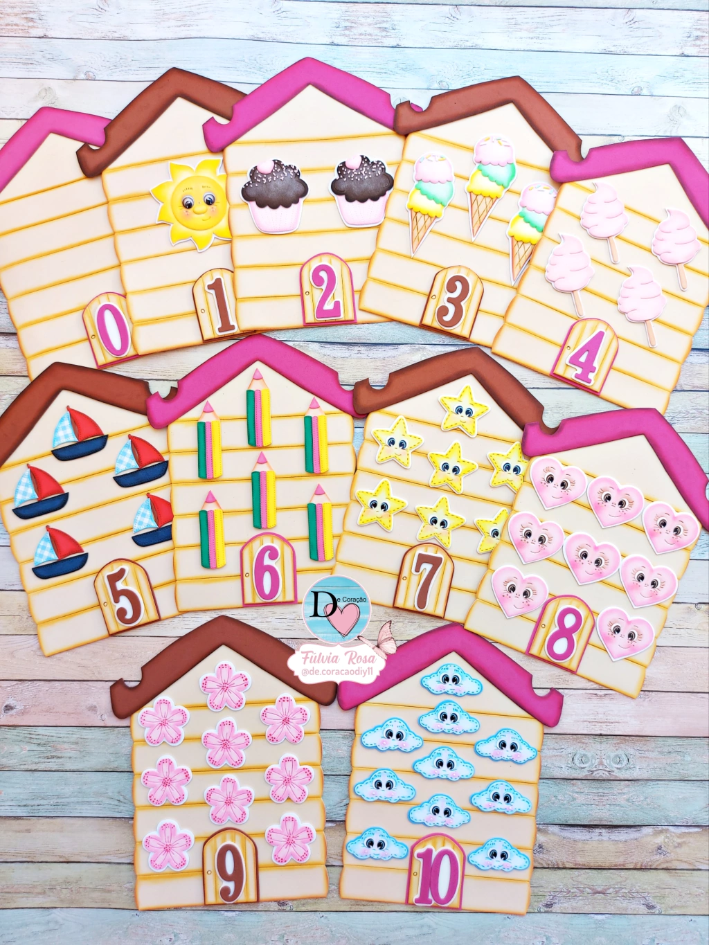 - Contém moldes para a confeccção de todo o recurso das casinhas de 0 a 10