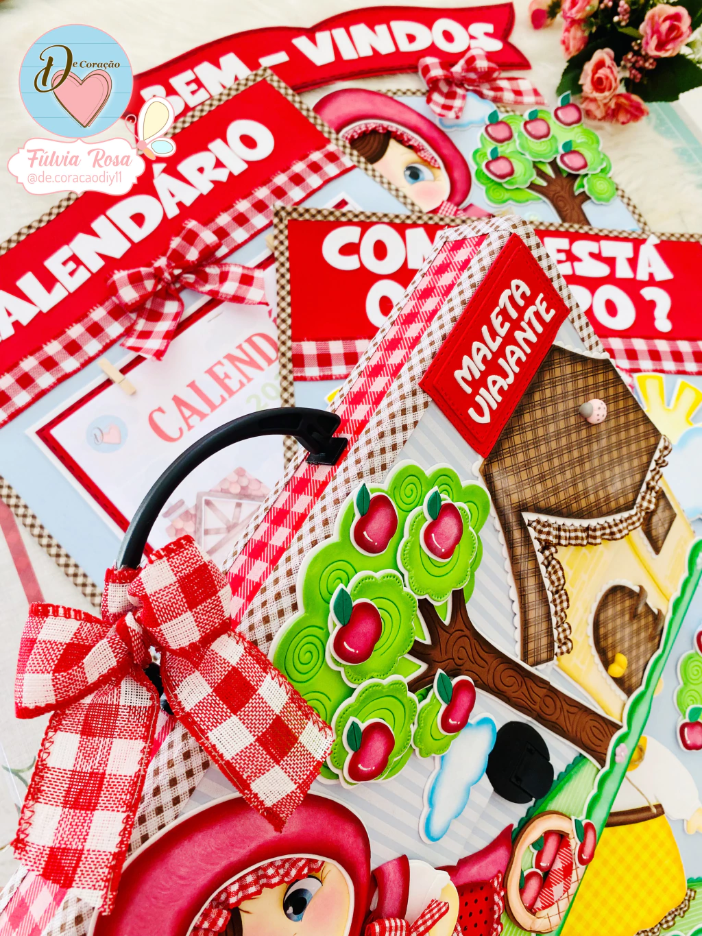 - Aulas de como encapar uma maleta viajante do zero, tema Chapeuzinho Vermelho.