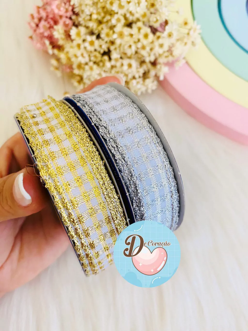 A Fita Metalizada Aramada Dourada ou Prata é a escolha perfeita para suas decorações natalinas! Com 2 metros de comprimento, esta fita traz um brilho especial para laços, enfeites e muito mais.