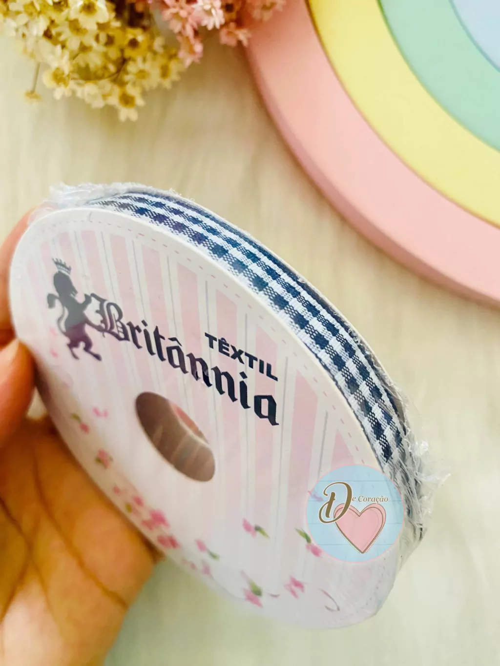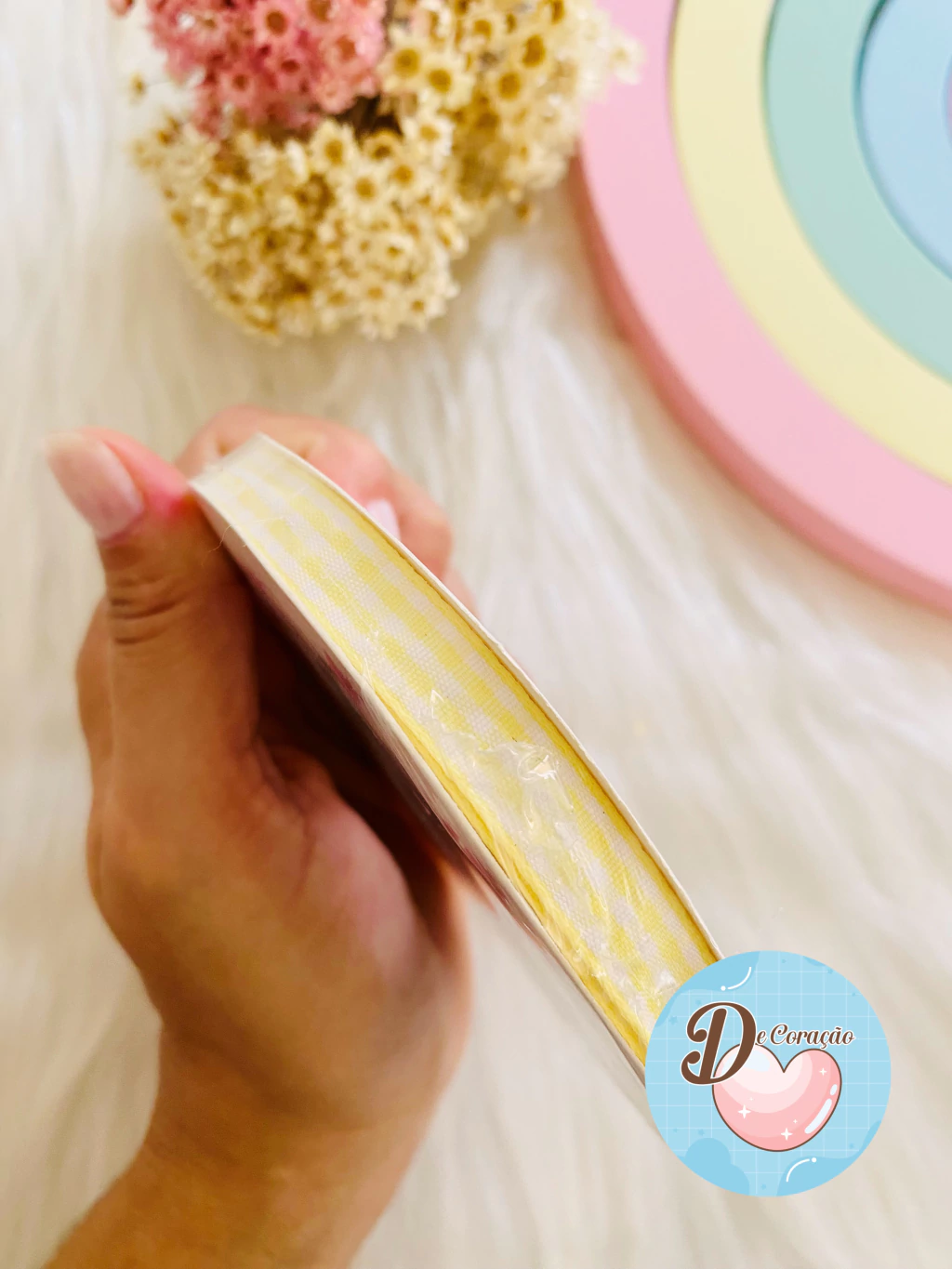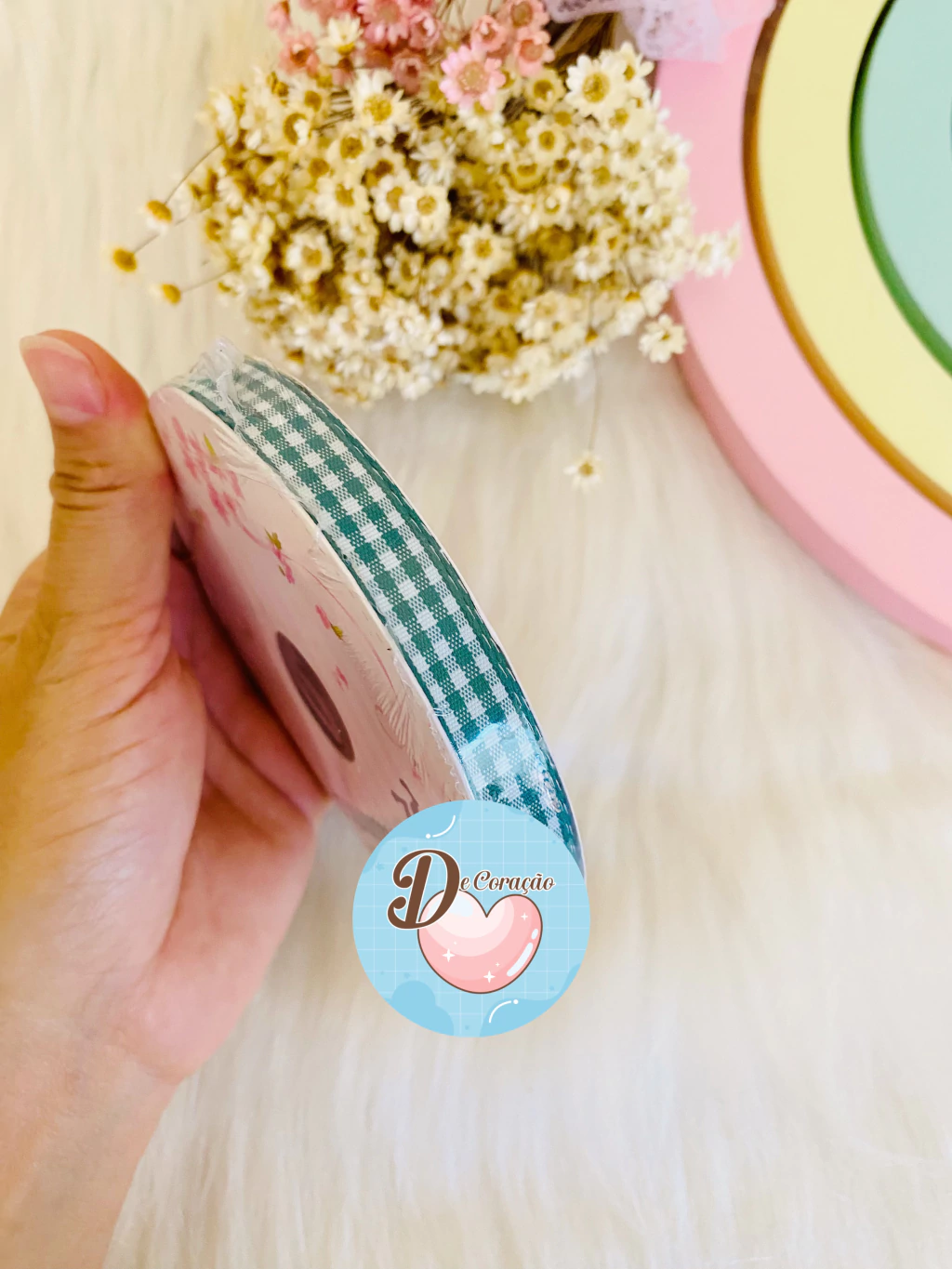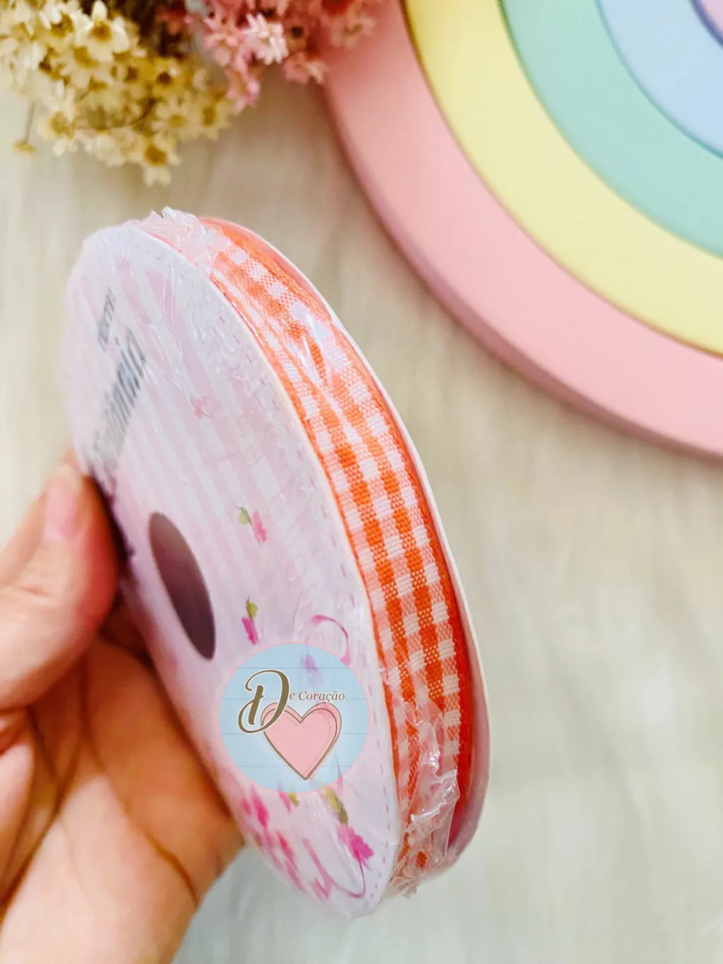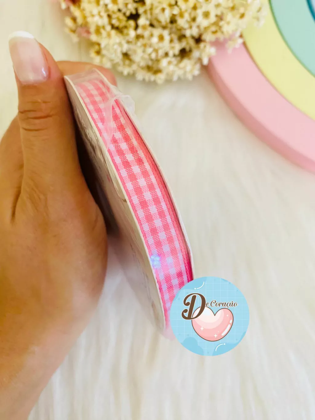 Cada rolo possui 10 metros de fita, garantindo versatilidade e durabilidade em suas criações.