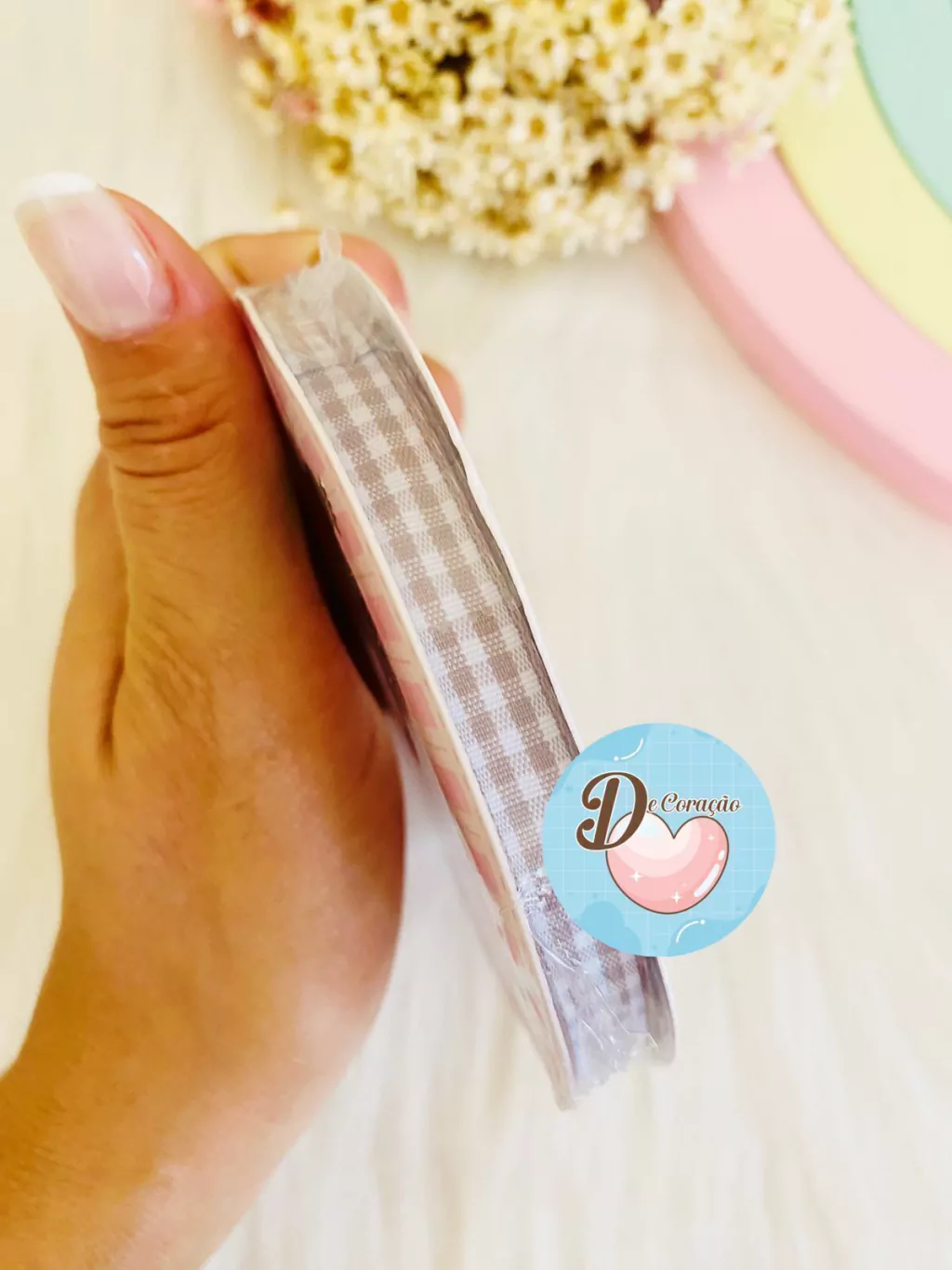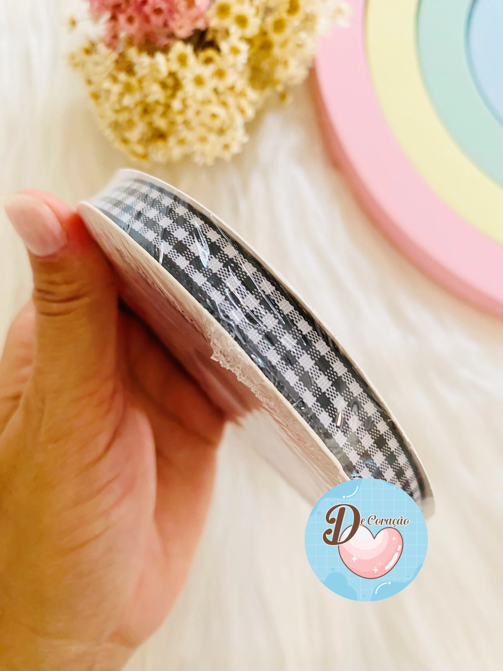 Este rolo contém fitas xadrez de alta qualidade, perfeitas para dar um toque especial aos seus projetos de artesanato.