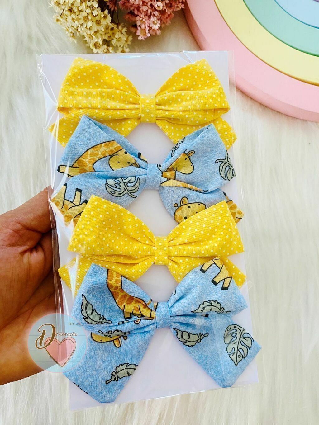 Os laços de tecido em tricoline são ideais para dar aquele toque especial em suas criações. Este pacote contém 4 laços costurados, cada um com estampas diversificadas, permitindo que você escolha o que mais combina com suas peças.