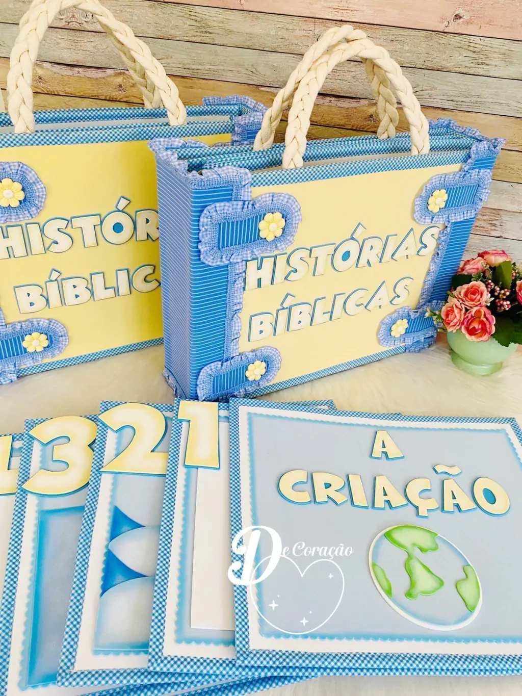 Apresentamos a Maleta de Histórias Bíblicas - Tema A Criação, ideal para o ensino bíblico infantil.
